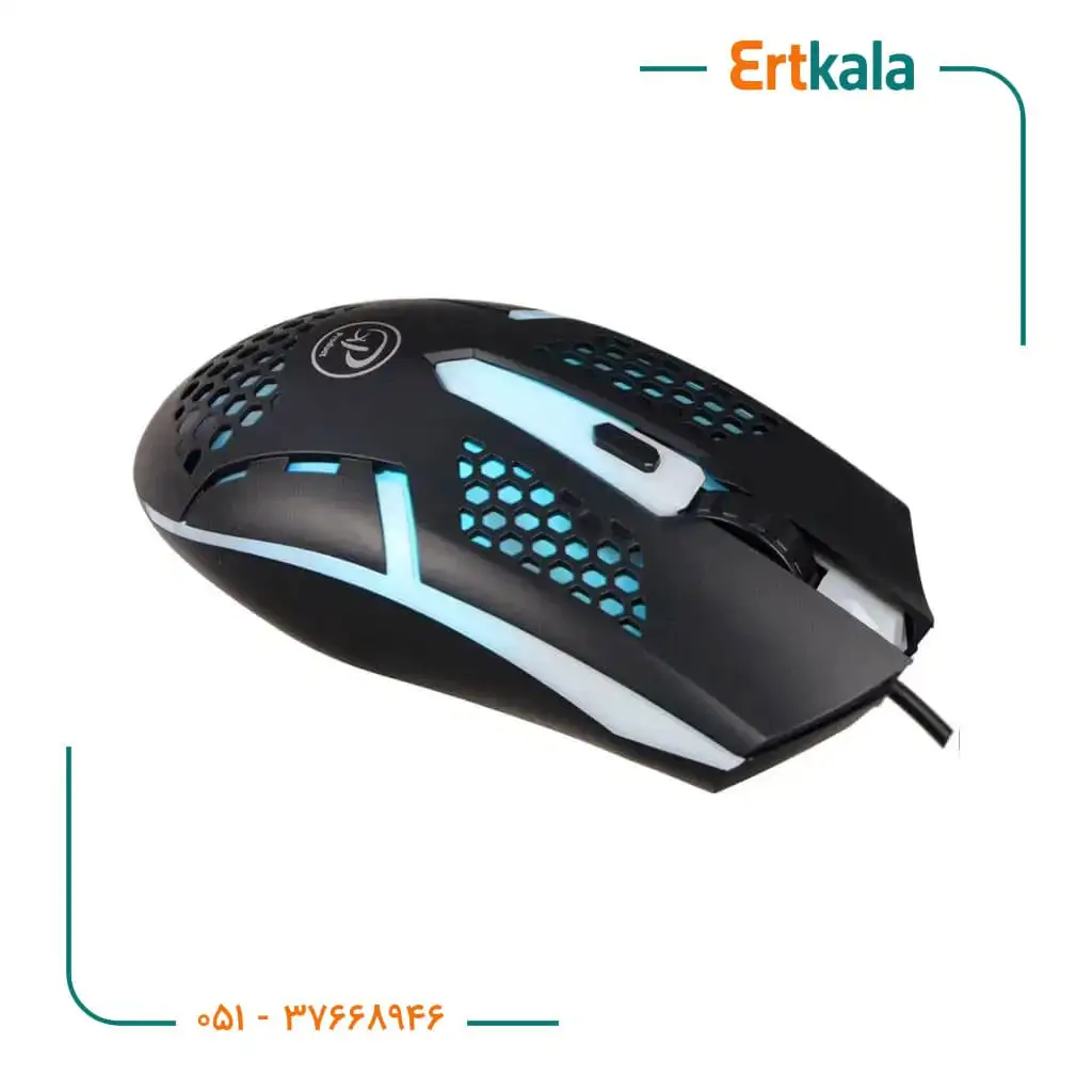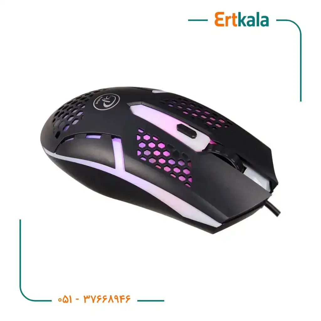 این موس GAMING دارای کلید برای تنظیم DPI از 1000 تا 1600 و چراغ 7 رنگ LED است که به جذابیت آن افزوده است .